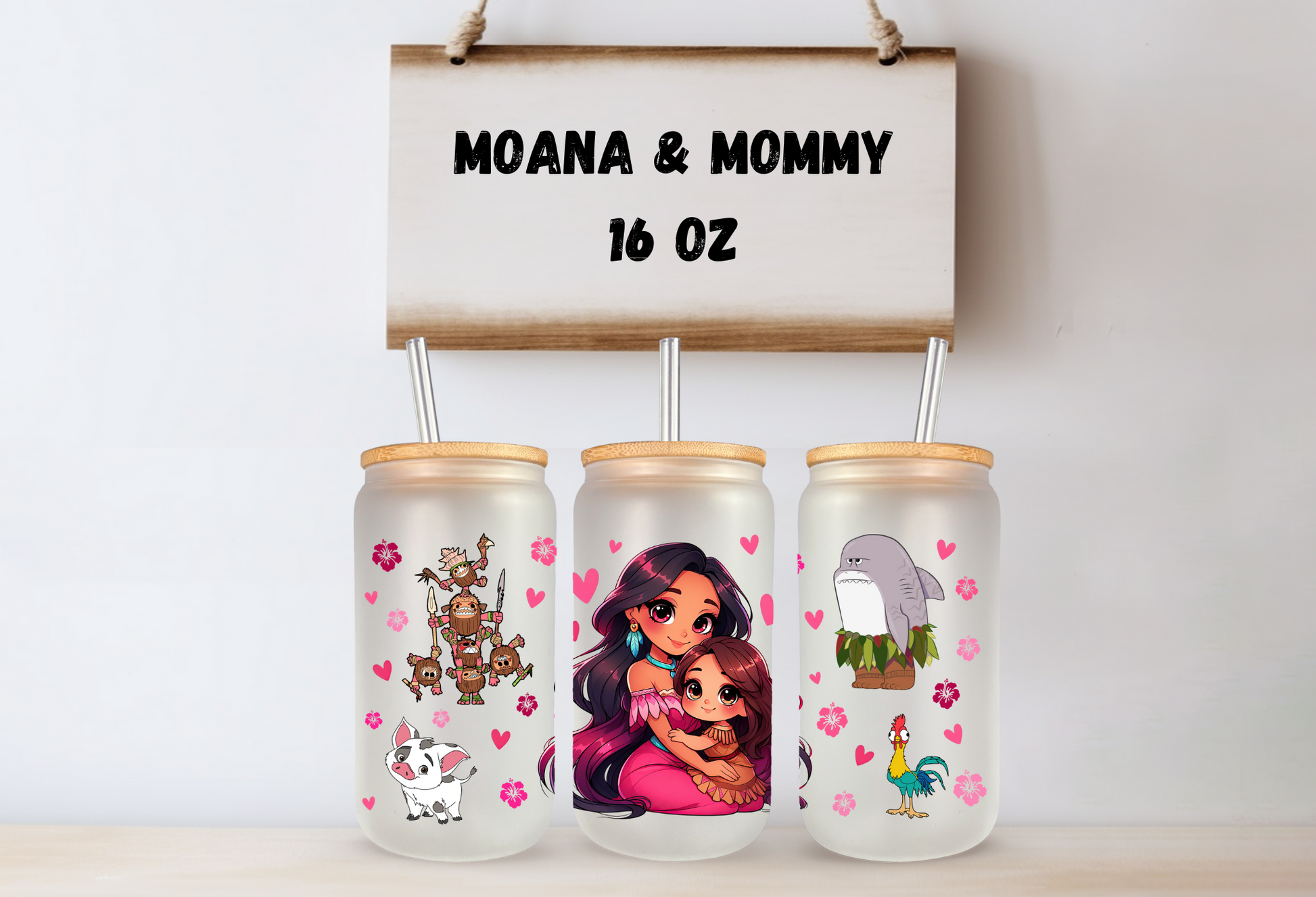 Moana & Mommy 16oz Frosted Glass