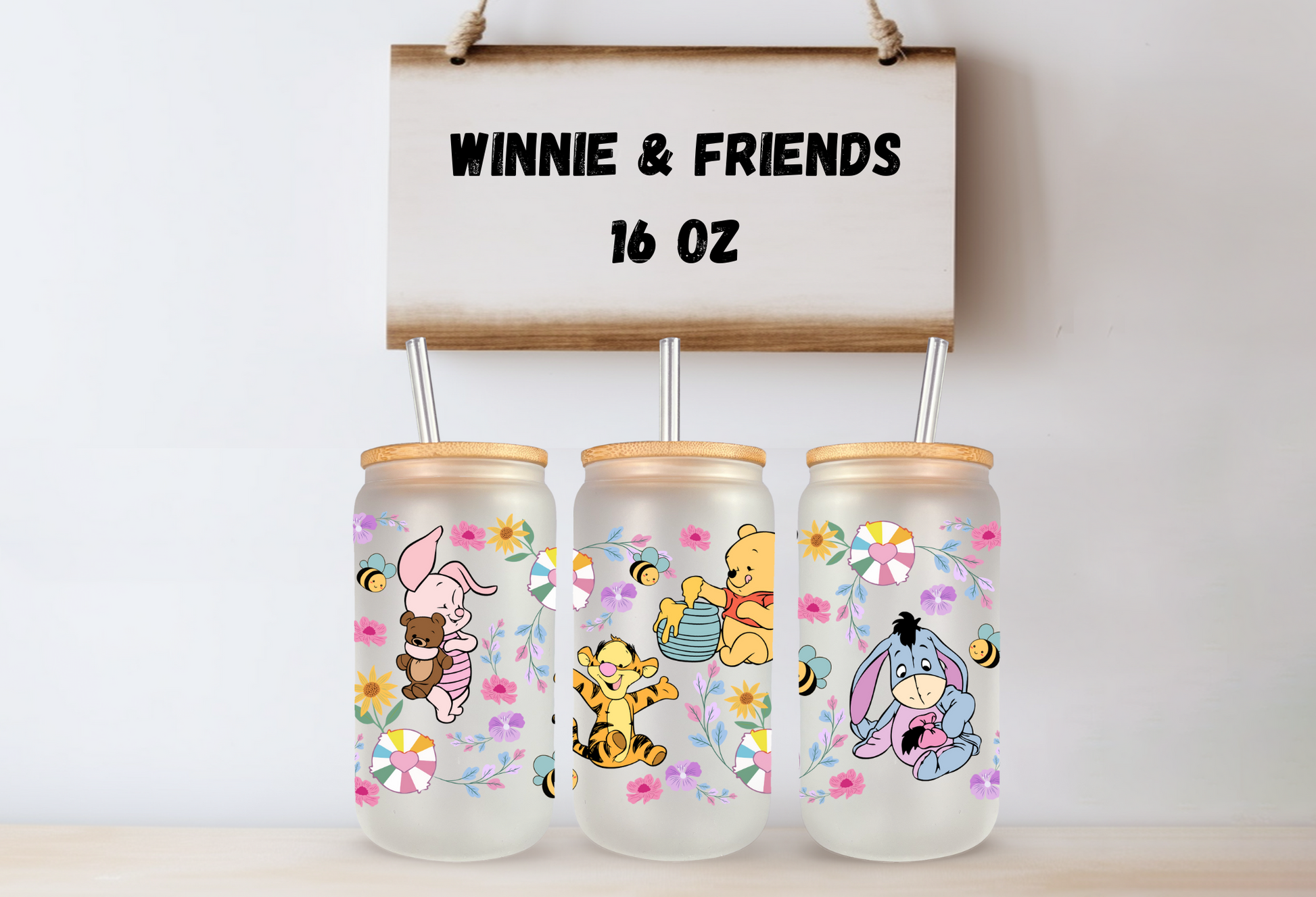 Winnie & Friends 16oz Frosted Glass